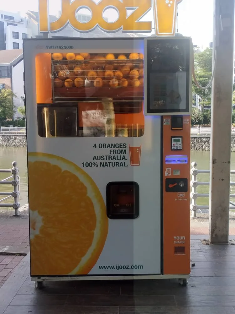 But what really caught my attention was this (see photo below). Perched on the pavement by the river was a fresh orange juice vending machine with fresh oranges from Australia! It stopped me in my tracks. I don’t typically take photos of anything, but this machine had me taking my phone out!