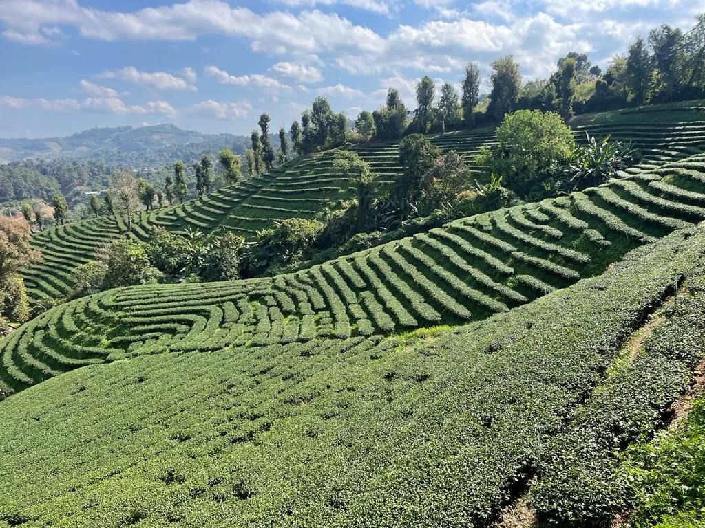 We were leaving the Laotian border and heading towards the centre north, towards Chiang Rai. Mae Salong is the tea-growing part of Thailand, the old opium fields. In Mae Salong I was transported back to China. It is a little Yunnanese haven. When I looked at the location of Mae Salong, I understood the people and the food immediately. Yunnan is a little further north beyond the Myanmar border with Thailand. We had a Yunnanese meal for dinner and stayed in a local hotel with a tea plantation.