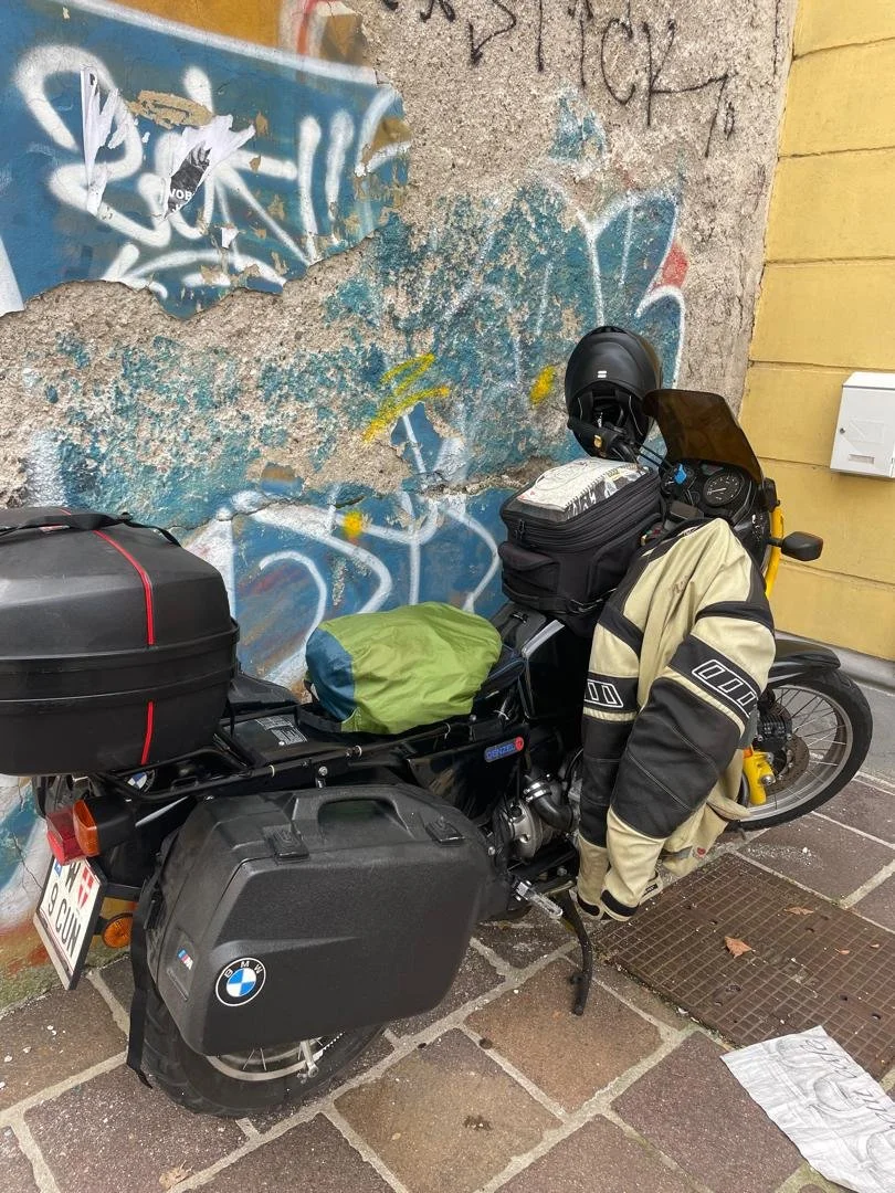 Though it was frustrating and shocking, life happens and adapt we did! I had to travel with my boots and riding jacket. We managed to get my helmet and riding pants into the motorbike boxes. Space is limited on the bike. 😉